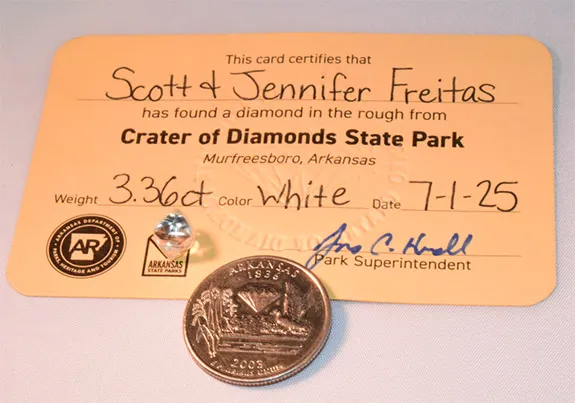 Scott and Jennifer Freitas of New Port Richey made the remarkable find on July 1 during a long-anticipated visit to the only diamond-producing site in the world where the public can search and keep what they discover.